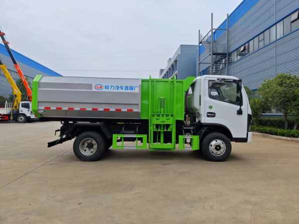 1、東風福瑞卡掛桶式垃圾車5方(新款),產品如下圖所示: