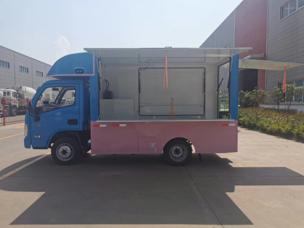 箱體采用內(nèi)外彩鋼板,地板為防滑鋁花紋板制作,箱體左右兩側(cè)上翻帶吧臺,副駕駛室側(cè)前部帶發(fā)電機倉,尾部上翻門,箱內(nèi)帶功放喇叭,開關(guān),插座,LED燈條,外接電源插頭
