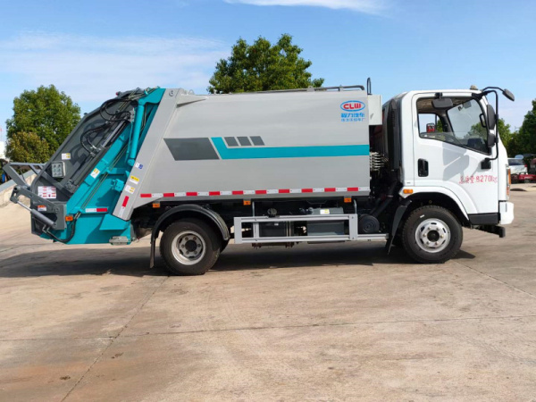 高配版東風華神T1八立方壓縮垃圾車,采用1920寬體豪華駕駛室,玉柴140馬力發動機,萬里揚五檔箱帶副變速,3300軸距 ,6噸級后橋,750鋼絲胎加強型底盤,箱體容積八立方,圓弧形箱體結構,邊四底四高強板制作,填裝器外置滑板油缸結構,是小區街道垃圾收集的好幫手。