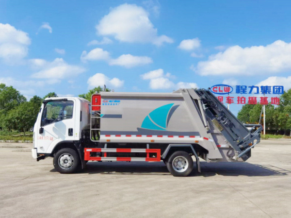 1、慶鈴鈴咖壓縮式垃圾車8方,產品如下圖所示: