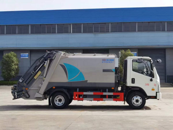 》上裝配置:上裝采用優質高強度鋼板制作箱體,容積6立方,新式可破碎刮板,中置及后置污水箱,國內知名品牌液壓系統(中梅多路閥,皖液泵,海普瑞斯油缸)駕駛室內及車身外采用CAN/PLc總線控制系統,帶無線遙控,光電感應,尾部翻轉架,帶照明燈。